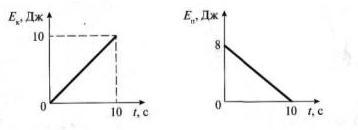 На рисунке приведены графики зависимостей кинетической энергии Ек тела от времени и потенциальной энергии Еп этого же тела от времен. Как изменится в течении первых 10 секунд полная механическая энергия этого тела?