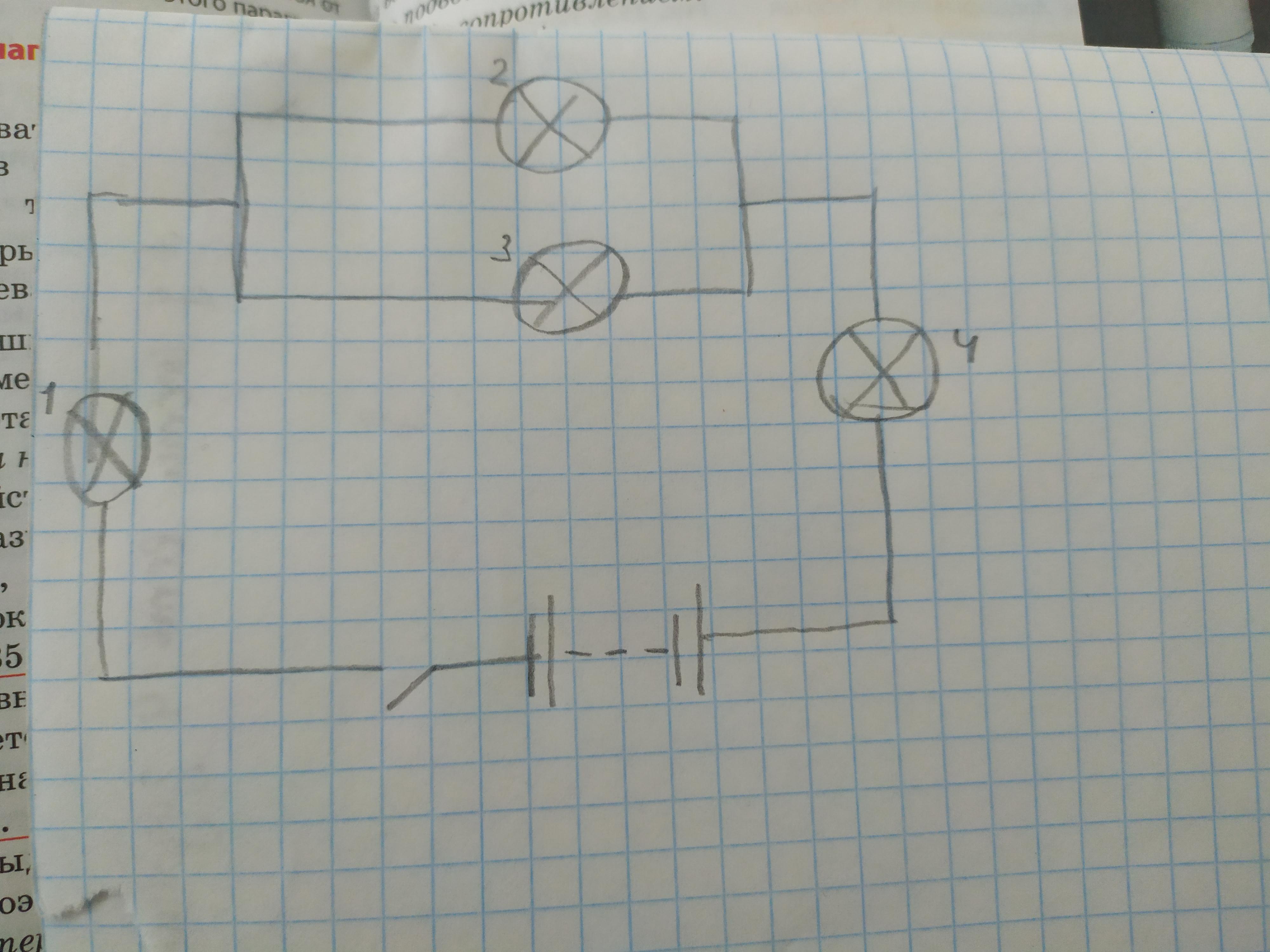 2)Четыре одинаковые лампы с сопротивлением 4 Ом подключены к источнику постоянного напряжения (см. Рис.). Определите силу тока в каждой лампе, если напряжение на источнике составляет 40 В. *