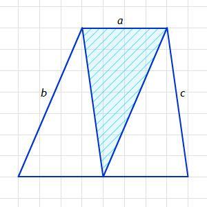 Найдите периметр заштрихованного треугольника, если a = 2 см, b = 3,8 см, c = 3,5 см.