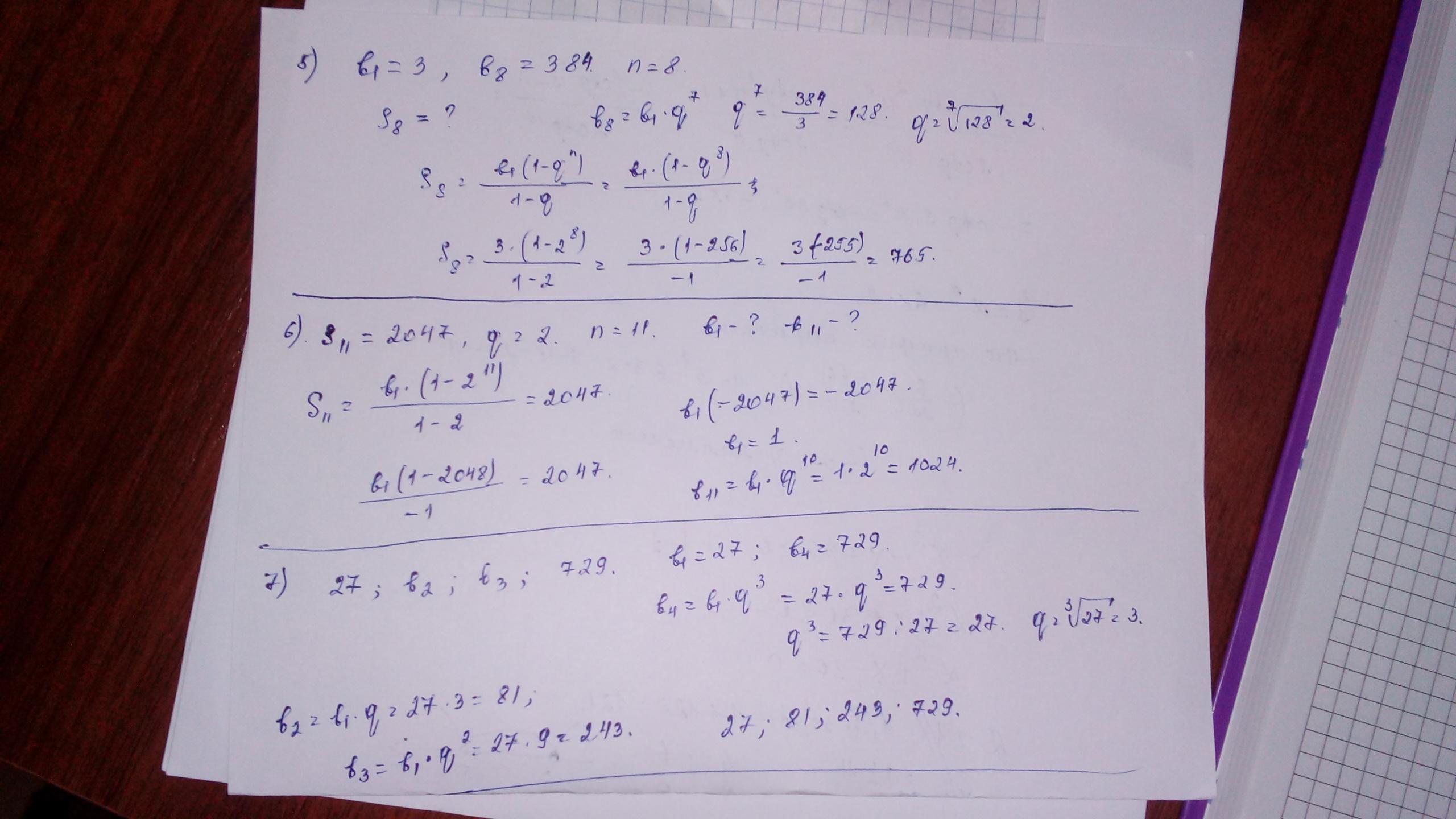 5.Найти сумму n-членов геометрической прогрессии (bn) в которой b1=3,b8=384,n=8.