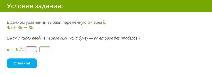 Перенесём b в другую часть уравнения, получим 4a=35-8b