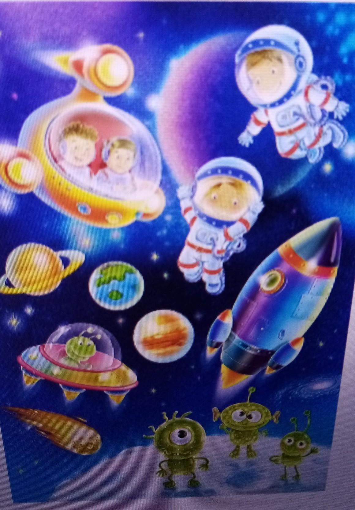 В одном маленьком городке жили 4 маленьких мечтателя, их звали Даша, Миша, Света и Гоша. Они очень часто встречались и играли в разные игры и в этот раз они решили поиграть в космонавтов. Они собрались в круг, собрав все свои игрушки, которые были необходимы для космоса и начали игру. Ребята прилетели на планету, у которого не было названия, приземлились они мягко, они сразу же надели костюмы и скафандры и пошли изучать планету. Сделав первые шаги они увидели необычных существ, они были маленькие и зеленые, у некоторых был только один глаз, из головы торчали антенны, похожие на усики бабочки. Эти существа не казались злыми и они, рискнув, сделали несколько шагов им на встречу. Немного подойдя ближе, они увидели что это инопланетяне, внеземные жители этой планеты, они смотрели на них дружелюбно и не вызывали страха или опасности и ребята решили с ними познакомиться. Инопланетяне охотно знакомились с ребятами и уже через время они показывали им свою планету, но как только они собрались играть все вместе, Машина мама позвала ребят кушать и игра закончилась.