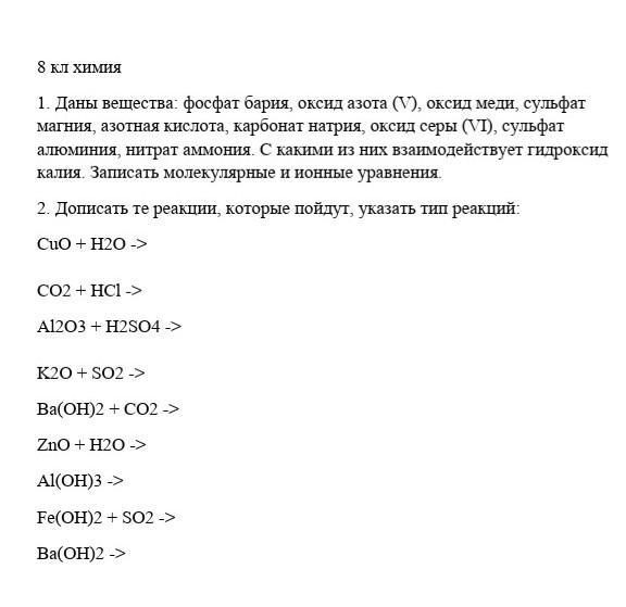 1) 6KOH + Ba3(PO4)2(фосфат бария) = 2K3PO4↓ + 3Ba(OH)2