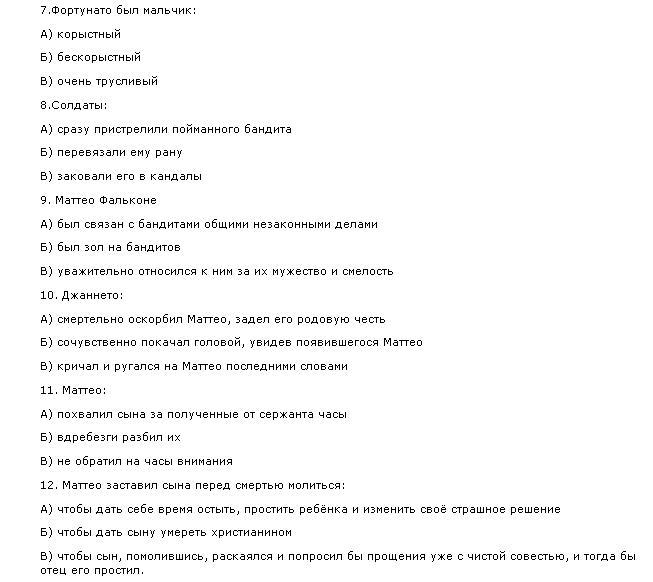 Тест по произведению П.Мериме «Маттео Фальконе» 2!! ПОМОГИТЕЕЕЕ