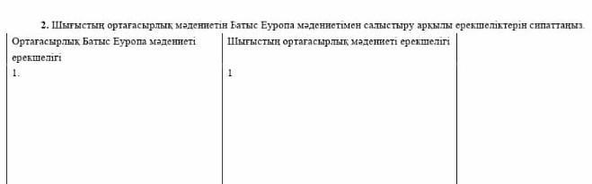 шығыстың ортағасырлық мәдениетін Батыс Еуропа мәдениетімен салыстыру арқылы ерекшеліктерін сипатыңыз