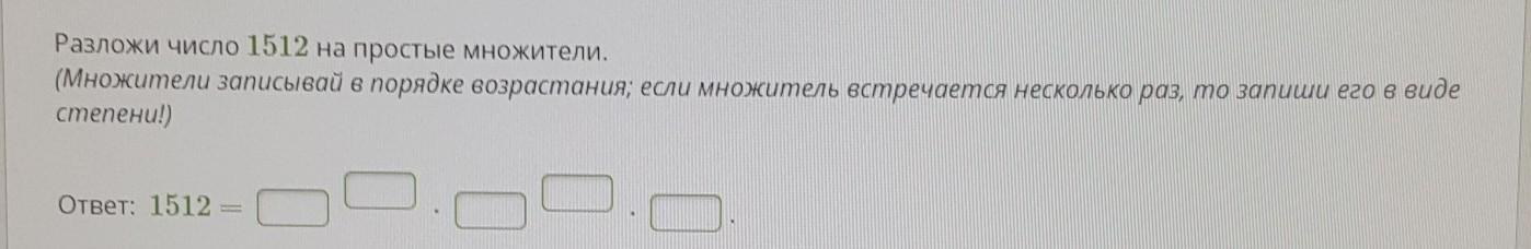 1512=2*2*2*3*3*7*13=2 (3) * 3 (2) * 7*13.Не знаю ли правильно?