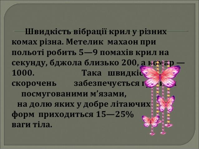 У повітрі значну частину життя проводять птахи, метелики, мухи та інші тварини. Літати їм допомагають крила. Серед звірів тільки кажани мають крила і здатні до активного польоту. літаючі комахималенькі й легенькі,