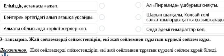 Еліміздің астанасы ғажап, онда әдемі ғимараттар көп, әсем Бәйтерек ертегідегі алып ағашқа ұқсайды, ал Пирамида үшбұрыш сияқты.