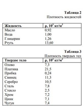 Перед вами таблица плотностей некоторых жидкостей и твердых тел. Какое (какие) из этих твердых тел утонет (утонут) в ртути?