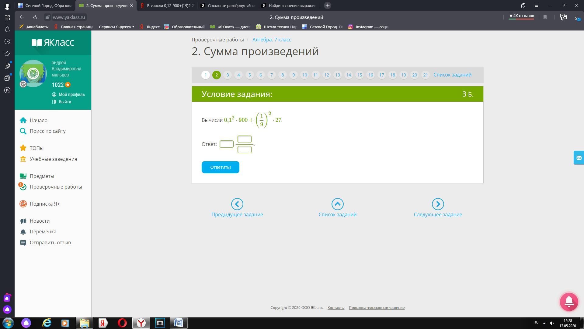 0,01×900+1/81×27=9+1/3= 28/3 = 9 1/3