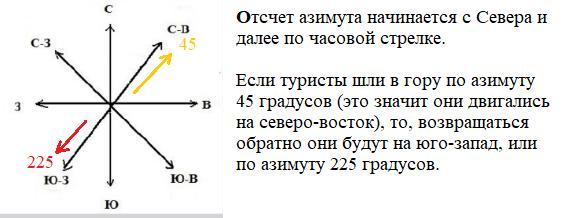 (Укажите, по каким азимутом возвращаться домой туристы, если на гору они поднимались по азимуту 45 °?)