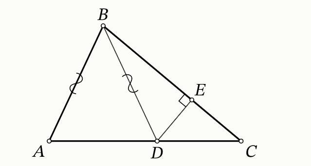 Точки D и E отмечены на сторонах AC и BC соответственно. Известно, что AB=BD, ∠ABD=52∘, ∠DEC=90∘. Найдите ∠BDE, если известно, что 2DE=AD.