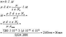 СРОЧНО Деталь, площадь поверхности которой равна 1 м2 покрывают слоем хрома толщиной 50 мкм. Какое время потребуется для покрытия, если сила тока при хромировании 2 кА? Известно, что плотность хрома 7200 кг/м3. Ответ запишите в минутах.
