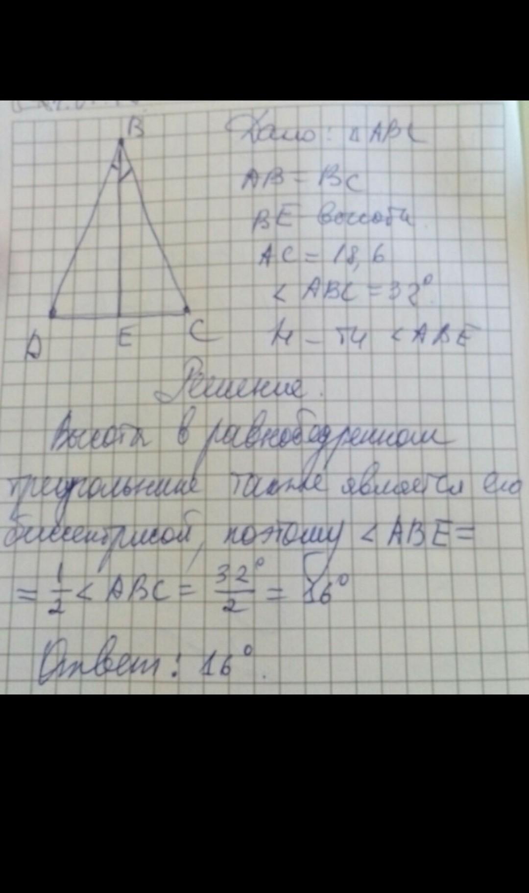 В равнобедренном треугольнике ABC с основанием AC отрезок BE-высота.