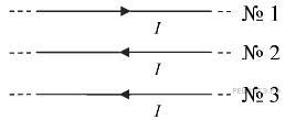 Как направлена сила Ампера, действующая на проводник 3 со стороны двух других (к нам, от нас, вверх, вниз)?
