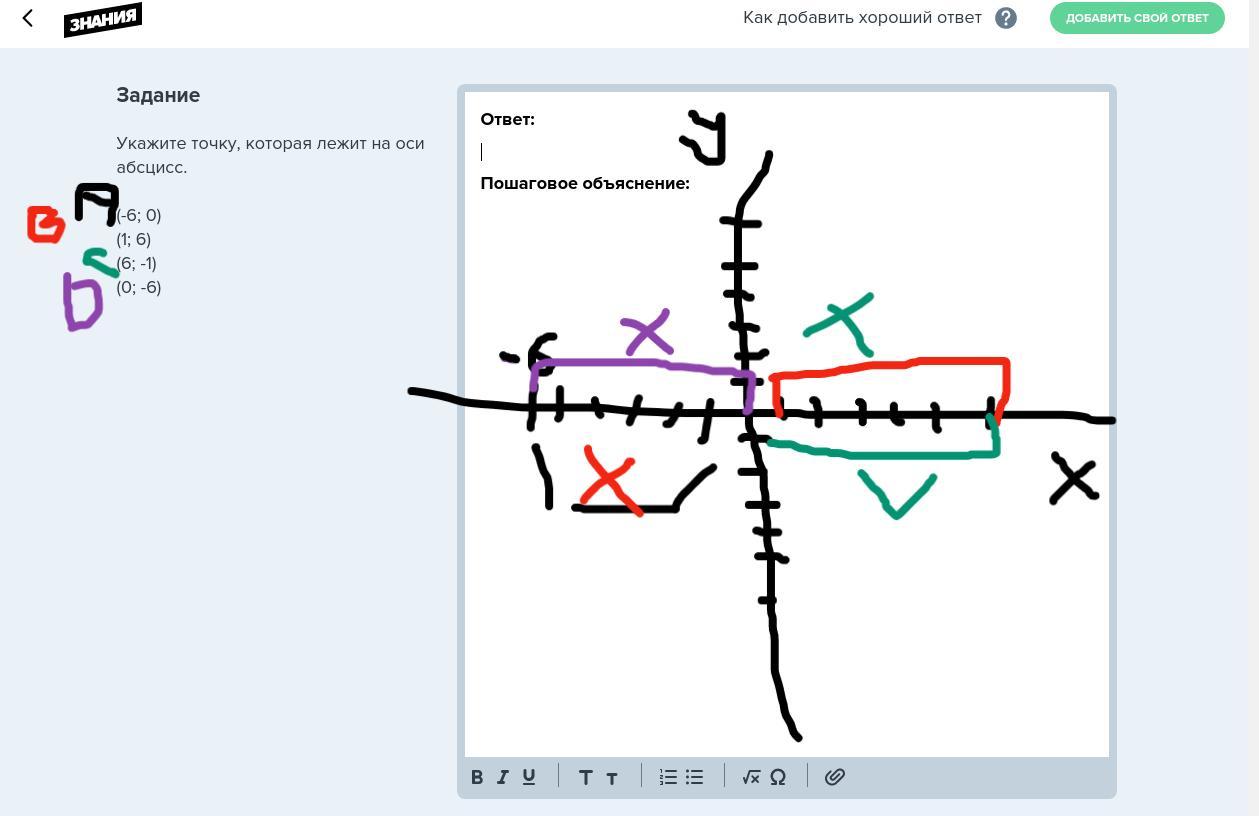 Итог с моего рисунка, что точка (6; -1) (я назвала эту точку C) лежит на оси абсцисс.