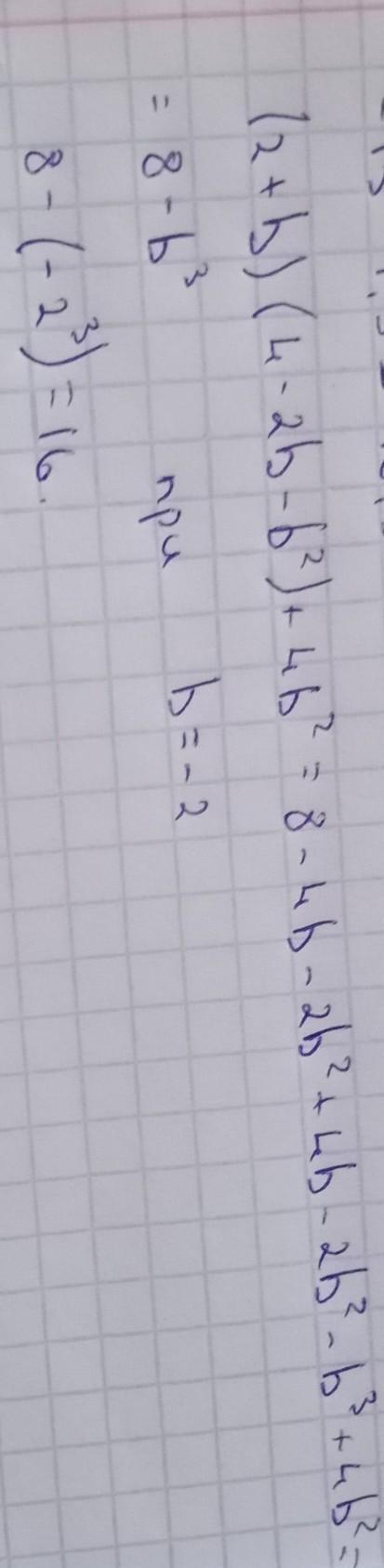 c) (2+b)(4-2b-b^2)+4b^2, если b=-2