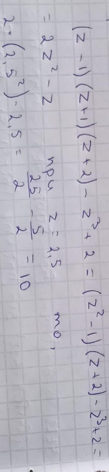 d) (z-1)(z+1)(z+2)-z^3+2, если z=2,5