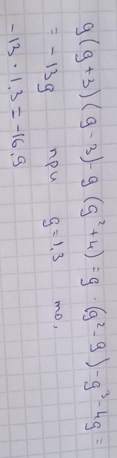 b) g(g+3)(g-3)-g(g^2+4), если g=1,3