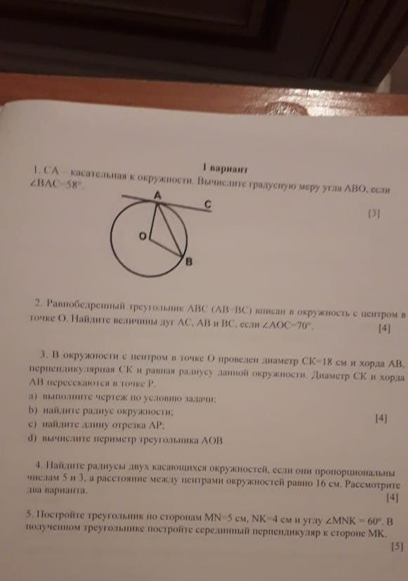 СА касательная к окружности. Вычислите градусную меру угла АВО если угол ВАО=58° Срочно !!! пожалуста !!