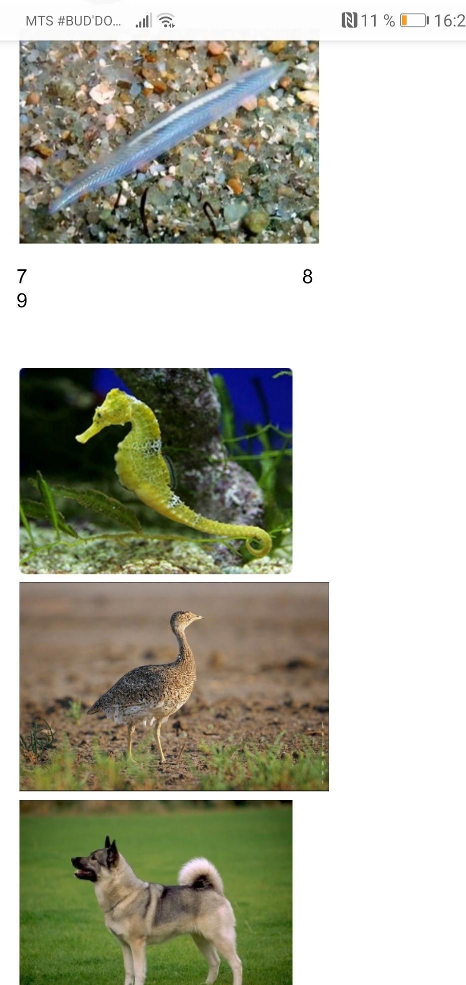 Ответ:1ланцетник. 2 морской конёк. 3 дрофа вроде семейство утиных. 4 собака немецкая овчарка но не факт. Коронку и сердечко если не сложно