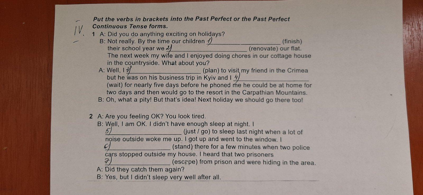 B: Not really. By the time our children (finish) their school year we (renovate) our flat. The next week my wife and I enjoyed doing chores in our cottage house in the countryside. What about you?