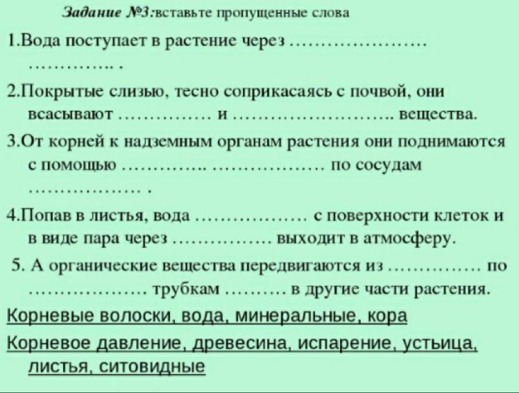 3.От корней к надземным органам растения они поднимаются с помощью корневого давления по сосудам древесины.