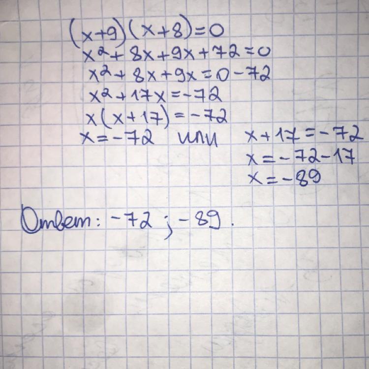 Ответ: х=-9; х=8;