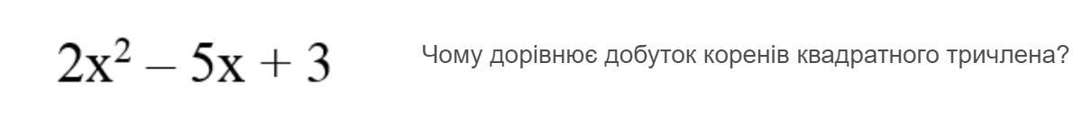 быстрее плз. Чому дорівнює добуток коренів квадратного тричлена 2х-5х+3