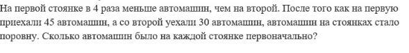 возмем 1 стоянку за х, тогда вторая 4х. х+45=4х-30