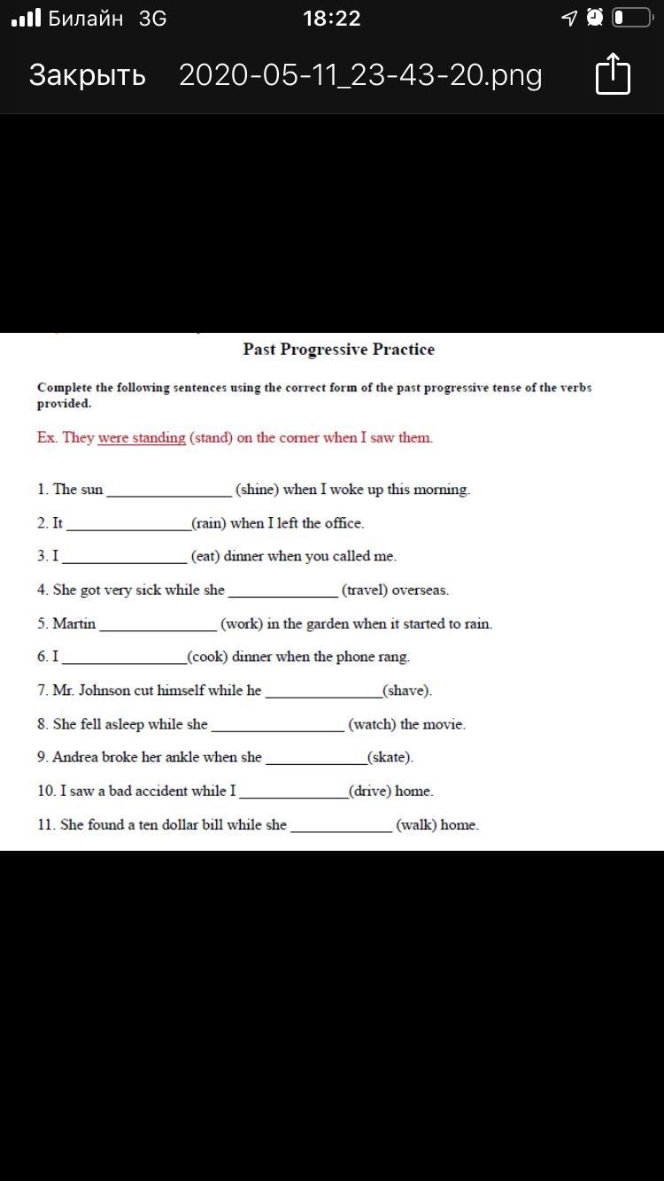 1. The sun was shining when I woke up this morning. (Солнце светило, когда я проснулся этим утром.)