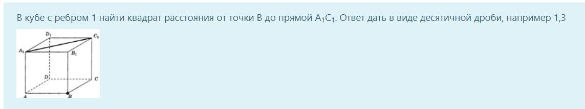 В кубе с ребром 1 найти квадрат расстояния от точки B до прямой A1C1. Ответ дать в виде десятичной дроби, например 1,3