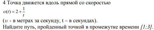 задача: Точка движется вдоль прямой со скоростью u(t)=2+1/t