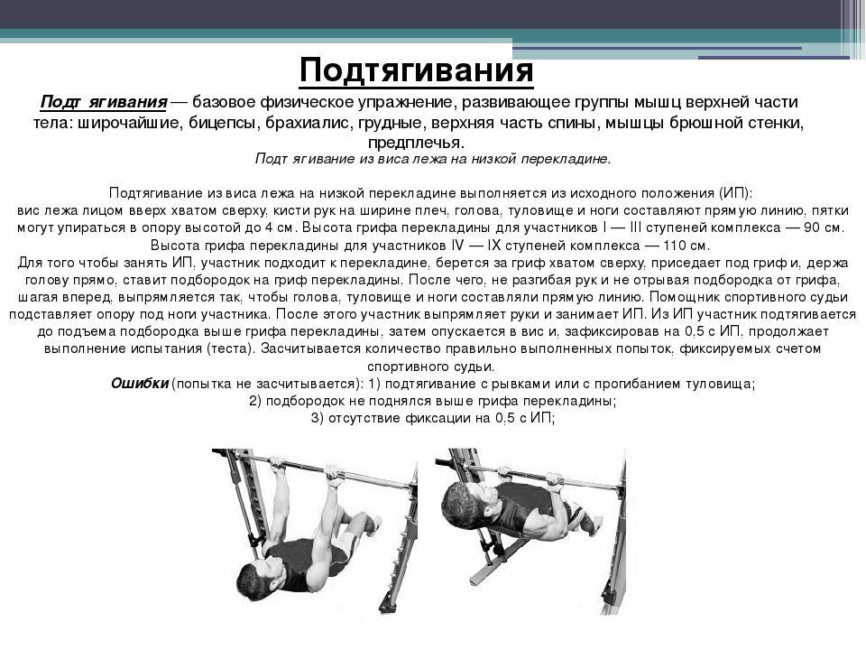 Объяснение:Подтягивания - это упражнение, чаще всего выполняемое на турнике; рабочие группы мышц: комплекс мышц рук (главным образом,предплечья, бицепсы) и спины (широчайшие). Чем шире хват руками за перекладину, тем больше нагрузка ложится на широчайшие мышцы спины; чем уже хват – тем больше нагрузка ложится на бицепсы. Если подтягиваться, касаясь перекладины затылком, то широчайшие мышцы растягиваются в ширину. А если подтягиваться, касаясь подбородком, то широчайшие растягиваются ещё и в толщину. При узком хвате, ладонями к себе, дополнительную нагрузку получает нижняя часть широчайших, находящаяся в районе талии.