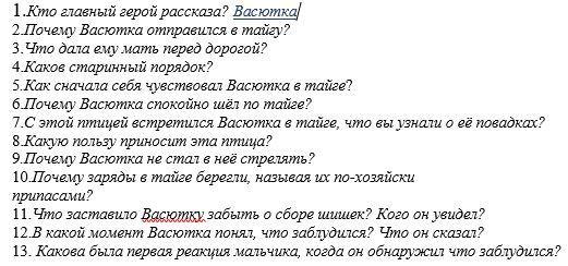 Ответе на вопросы по рассказу "Васюткино озеро".