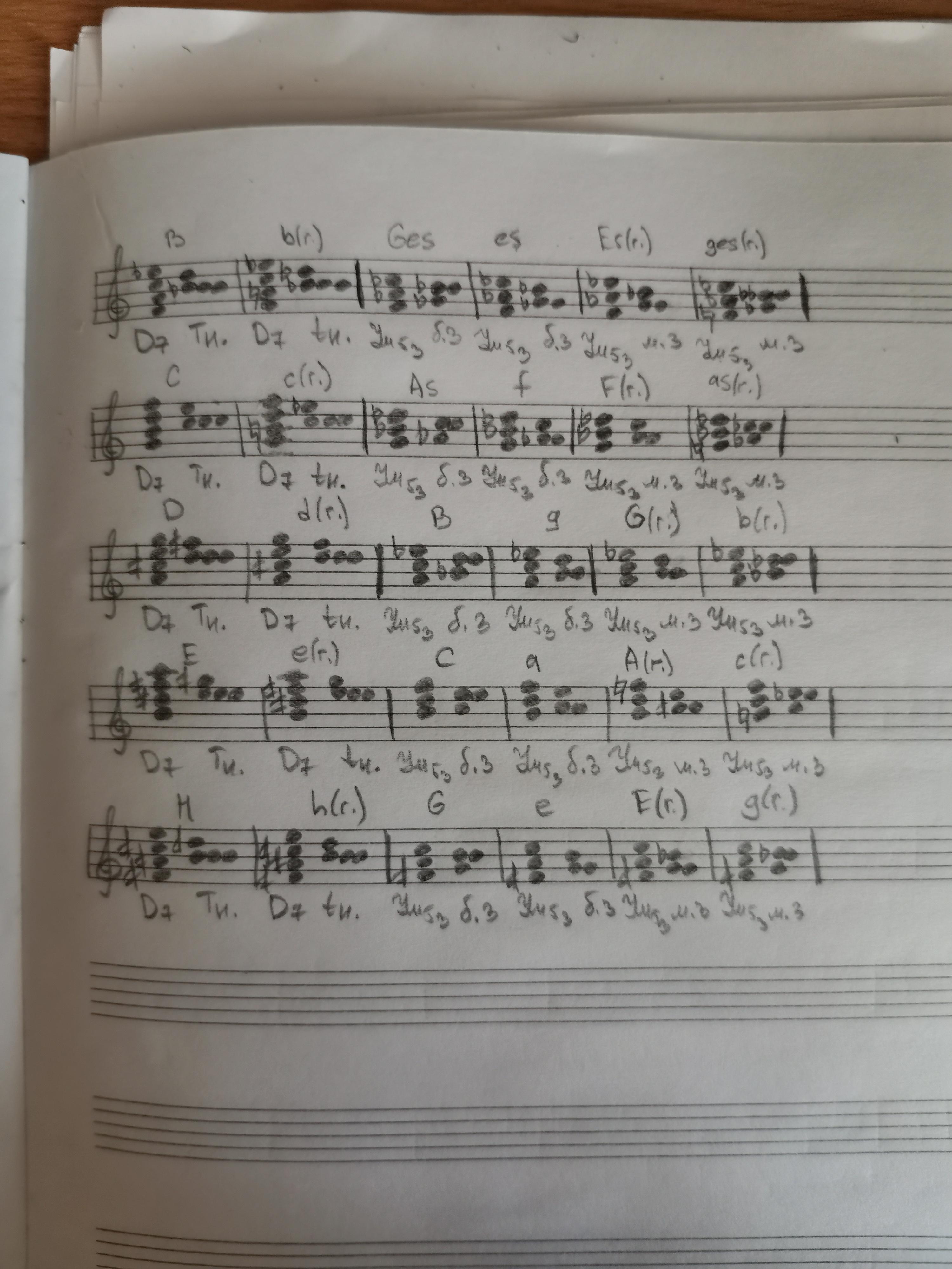 Письменно постройте d7 и ум53 от звуков:фа,соль,ля,си,фа-диез и ре и разрешите их.