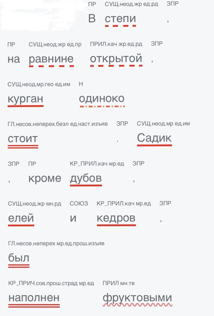 В степи на равнине открытой курган одиноко стоит. Садик кроме дубов елей и кедров был наполнен фруктовыми деревьями. Известно что смерчи или водяные столбы разбивают корабли. Берега заросли высокими старыми в три обхвата деревьями. В глубоком ущелье меж каменных плит серебряный ключ одиноко звучит. Никто кроме тебя не сумеет выполнить эту работу. Зимой даже в лютый мороз некоторые ходят без шапки. Направо от нас у самого озера шумел высокий сосновый бор. Осенью во время ненастья лес имеет унылый вид. Тихо с боязнью она говорила ему что-то важное. Впереди у самой воды горел костёр.