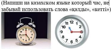 Напиши на казахском языке который час, не забывай использовать слова «қалды», «кетті»