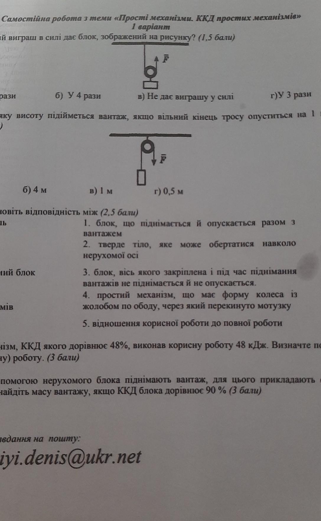 Самостійна робота з теми «Прості механізми. ККД простих механізмів»