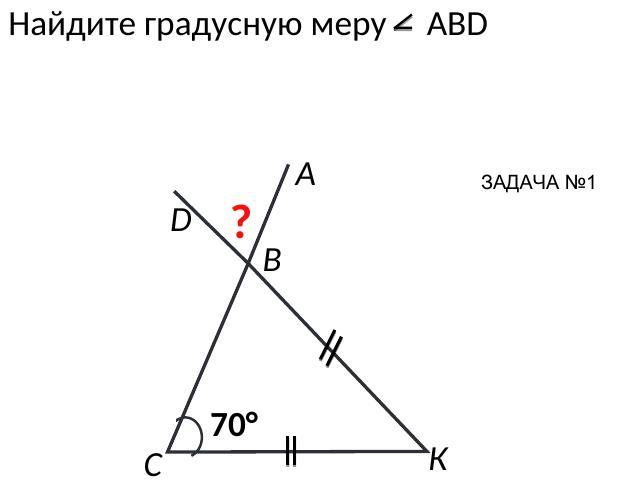 70°т.к. треугольник СВК равнобед(СК=КВ) и углы ДБА и СВК равны как вертикальные