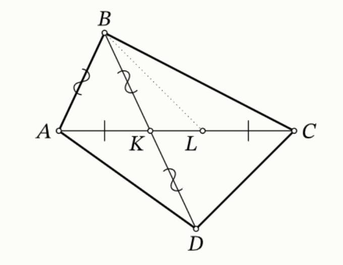 Диагонали четырёхугольника ABCD пересекаются в точке K. Оказалось, что AB=BK=KD. На отрезке KC отметили такую точку L, что AK=LC. Найдите ∠BLA, если известно, что ∠ABD=58∘ и ∠CDB=86∘