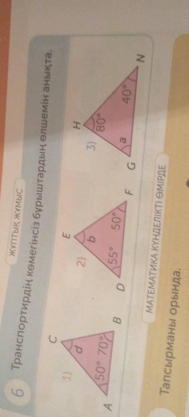 Транспортирдің көмегінсіз бұрыштардың өлшемін анықта.