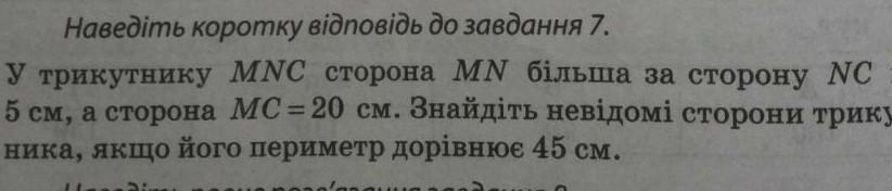 помогите пожалуйста 16балов!!!только ответ!!! там "більша за сторону НС НА 5см"​