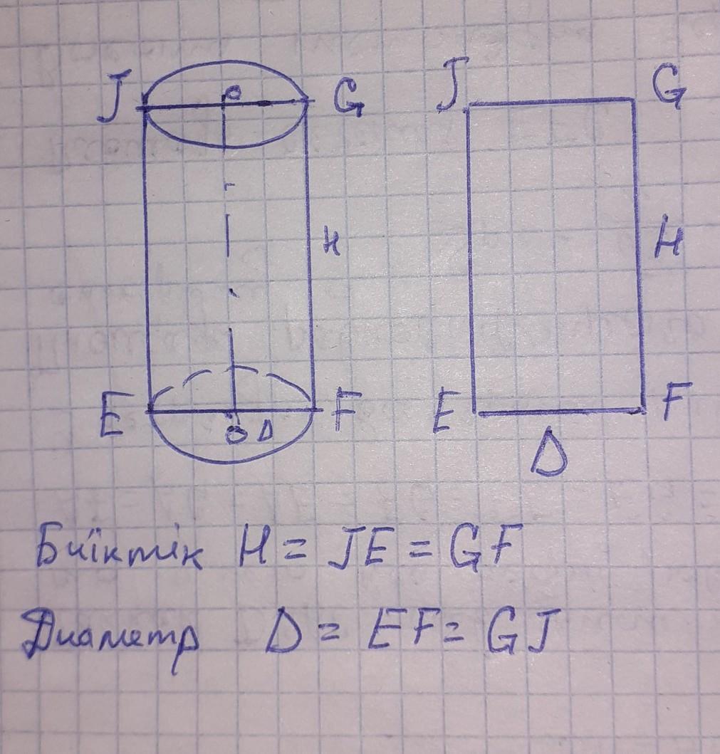GJ=EF қабырғалары цилиндрдің жоғарғы және төменгі табаны цилиндрдің диаметріне D тең .