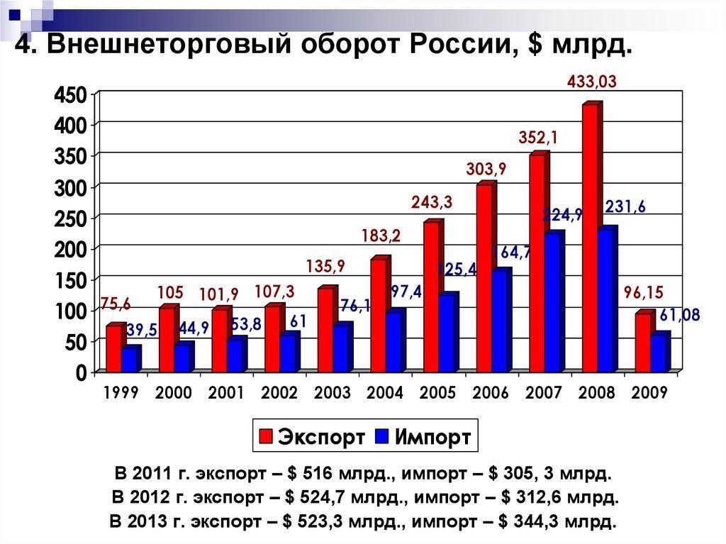 1. Проанализируйте графики «Внешняя торговля России» и определите: