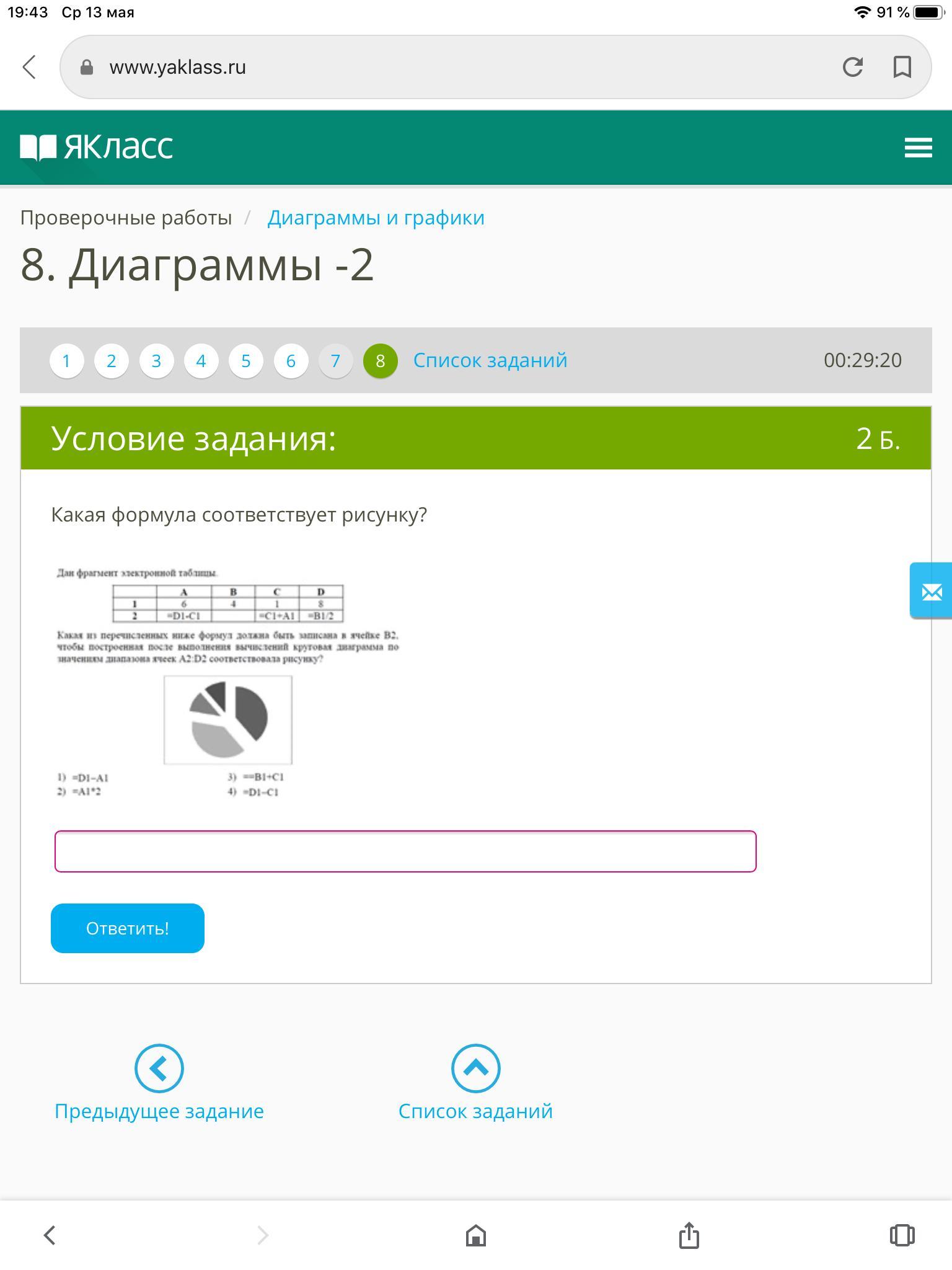 Поэтому выбираем =D1-A1, что равносильно выражению 8-6=2