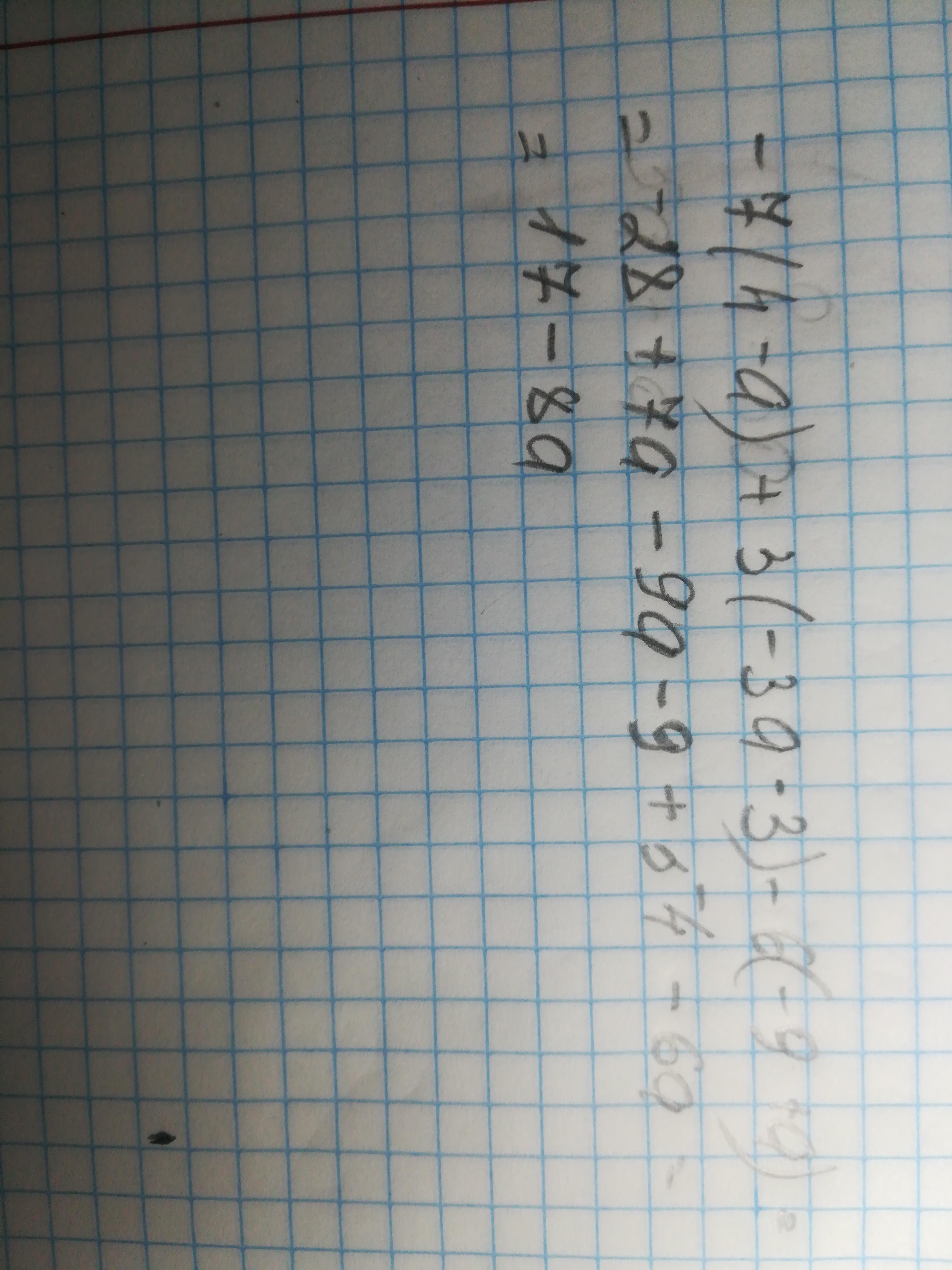 −7(4−a)+3(−3a−3)−6(−9+a).