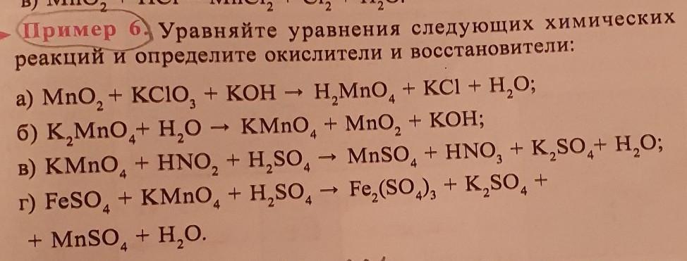 б) 2 K2MnO4 + 2 H2O → 2 KMnO4 + H2 + 2 KOH