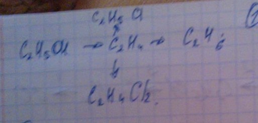 1) C2H5OH ->(H2SO4,t)-> CH2=CH2 + H2O - этилен + вода