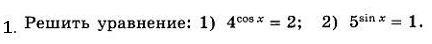 1) 4^cosx=2